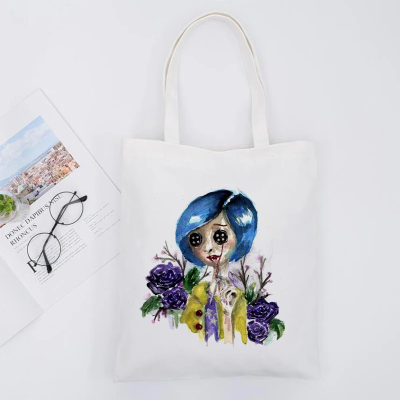 Холщовая Сумка на плечо Coraline с рисунком, многоразовая Женская эко-сумка для покупок с рисунком из мультфильма Ведьмак