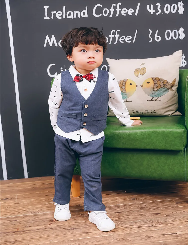 Одежда для маленьких мальчиков в джентльменском стиле костюм из хло...