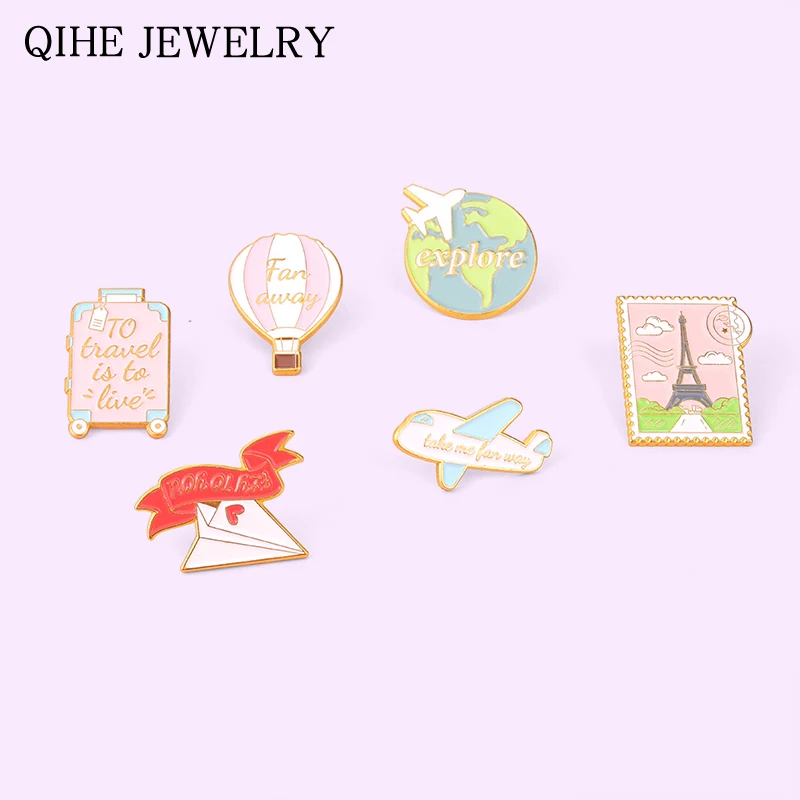 Эмалированные Значки для путешествий, открытка для самолета, чемода...