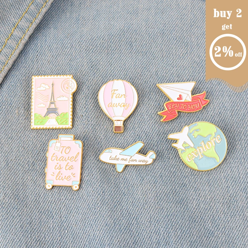 Забавная эмалированная булавка для багажа Исследуйте самолеты броши...