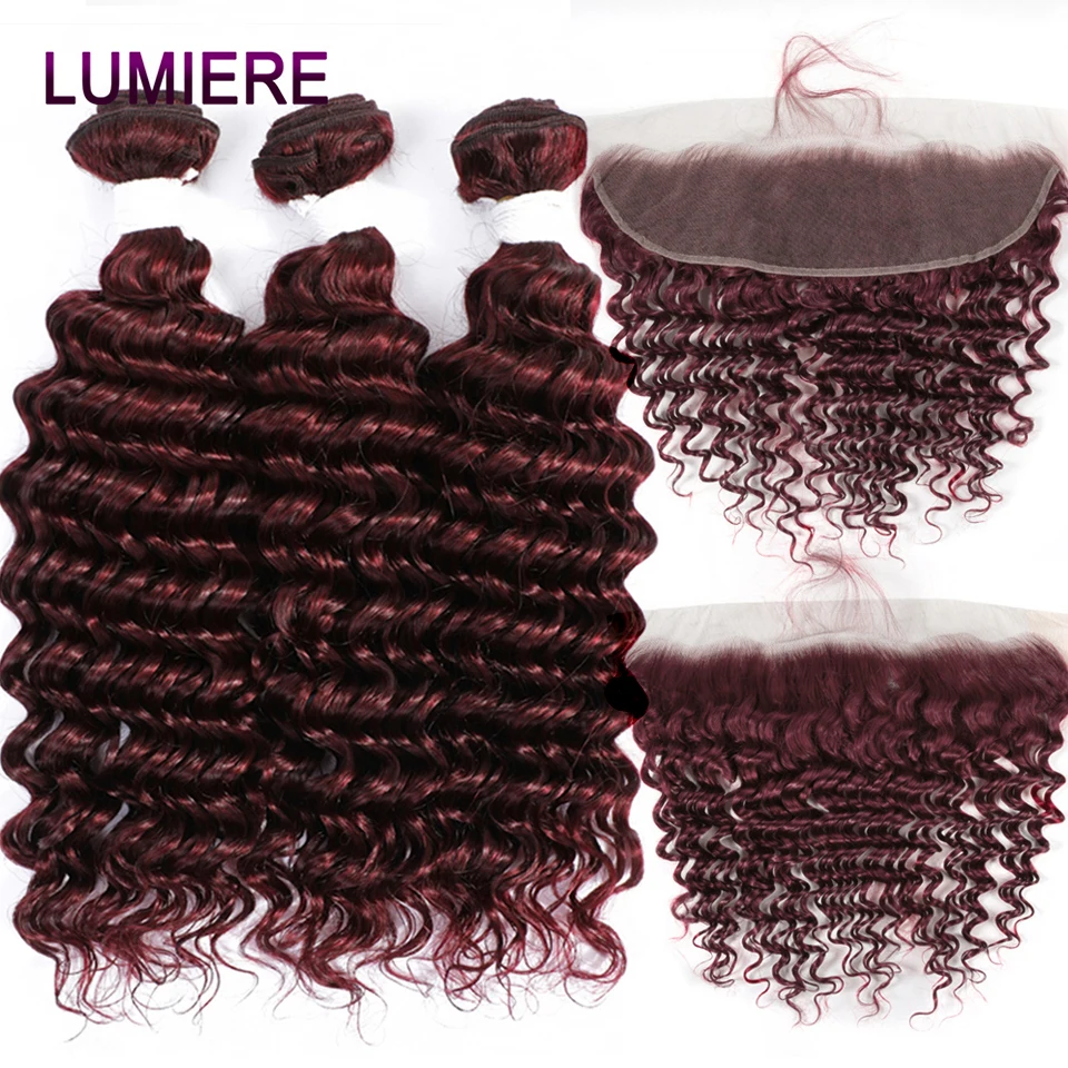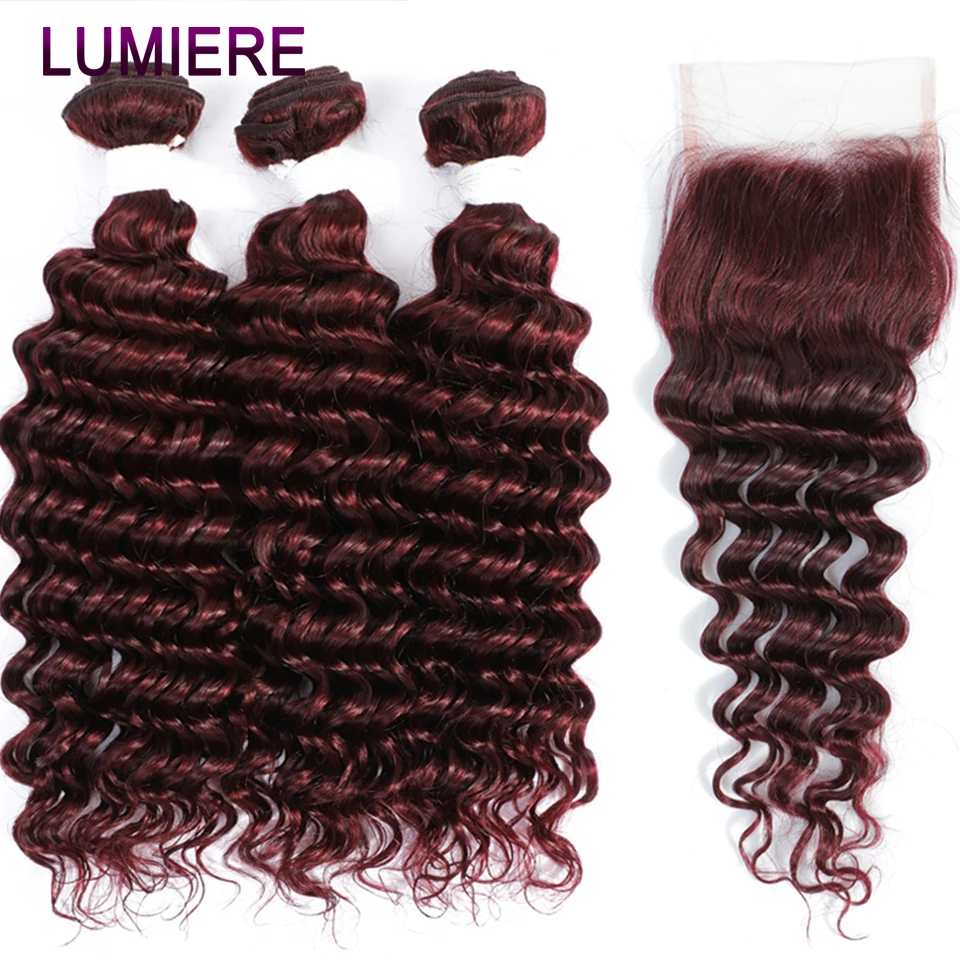 Красные пучки глубоких волн 99j с застежкой, бразильские волосы, толстые красные 99j пучки бордового цвета с застежкой, светлые волосы, пучок волос Remy