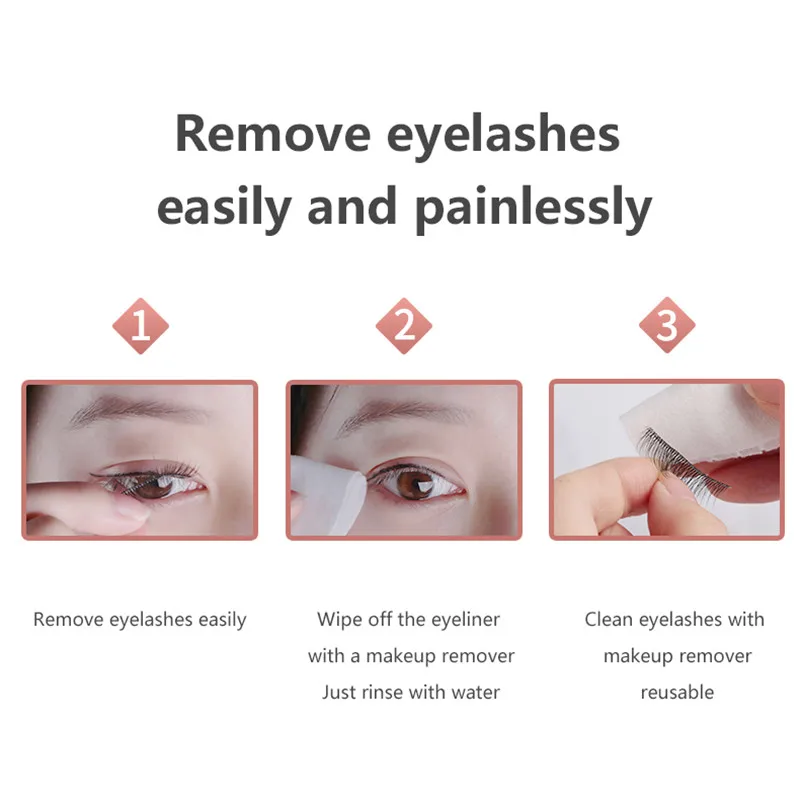 Клей для ресниц не требуется, прост в использовании. Он остается нетронутым в течение дня, и его легко снять и переустановить.
