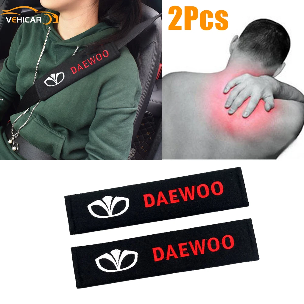 Автомобильный ремень безопасности 2 шт. с логотипом Daewoo, вязаная Накладка для ремня безопасности автомобиля, протектор плеча водителя, аксессуары для автомобиля