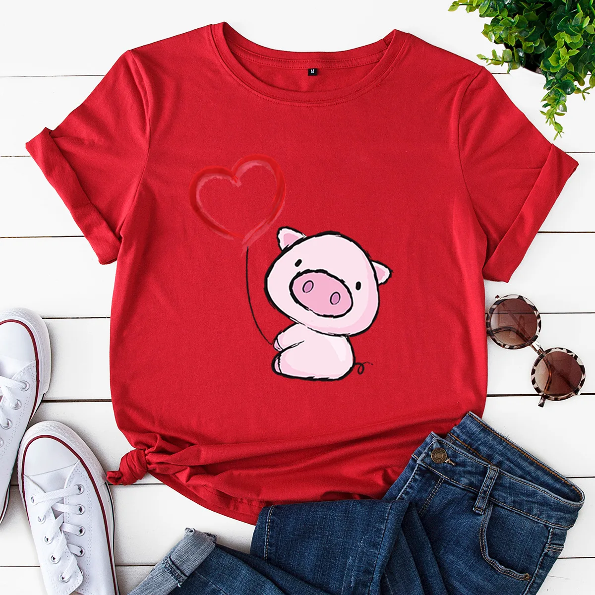 Женская футболка с круглым вырезом, коротким рукавом и принтом в виде свиньи