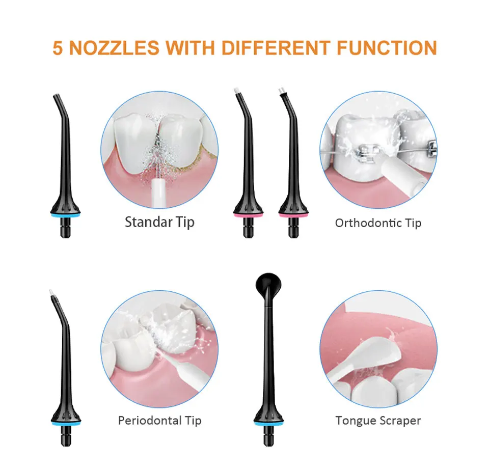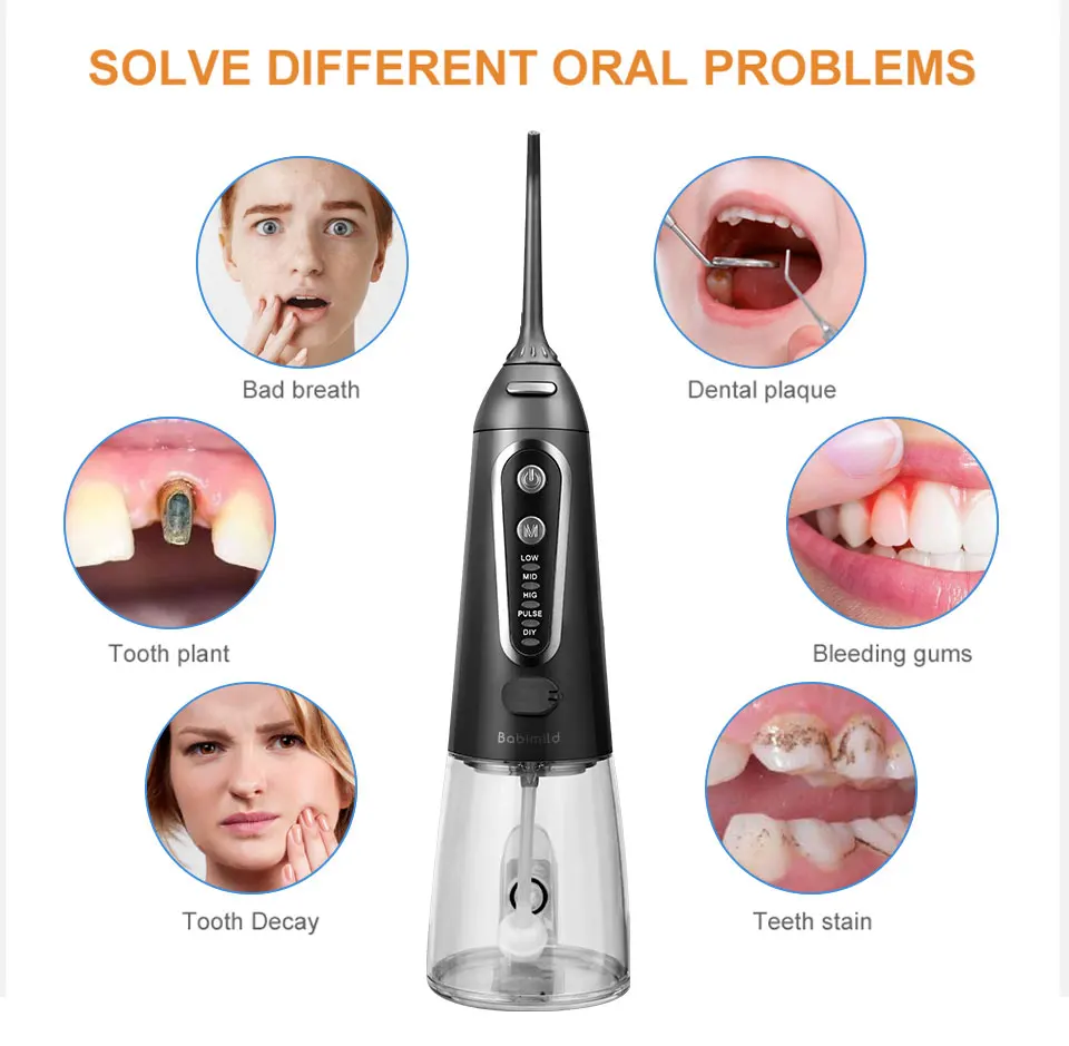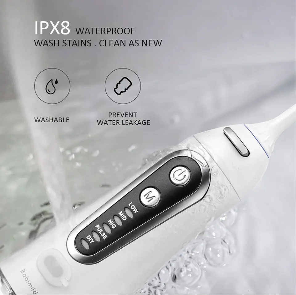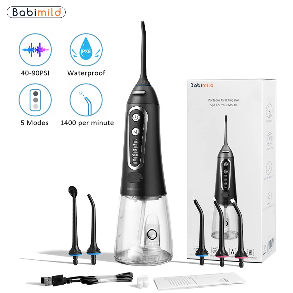 Ваш рот является воротничком для вашего общего здоровья, поэтому важно поддерживать здоровье десен.Используя оптимальное сочетание давления и пульсации, Mornwell F18 Удаляет налет и частицы пищи из скоб и проводов, а также массирует и стимулирует десны. Эти действия помогают уменьшить налет на зубах и вокруг аппаратных средств, а также улучшить здоровье десен.Бесплатная доставка 5 режимов ирригатор для полости рта USB перезаряжаемая водяная нить переносная зубная Вода Flosser Jet 300 мл ирригатор зубные зубы очиститель + 6x насадкиТеплые советы:1. Пожалуйста, внимательно прочитайте все инструкции перед использованием2. Если вы хотите использовать с водой, полосками для полоскания рта или антибактериальными полосками, Следуйте рекомендациям ваших стоматологов или гигиенистов3. Не обращайте внимания на глаза при включении ирригатора полости ртаХарактеристики Товара1. Название продукта: 100% новый бренд ирригатор полости рта для взрослых2. Модель: D3013. Материал корпуса: 100% высококачественный АБС-пластик4. Материал резервуара для воды: 100% высококачественный ПК5. Характеристики: многофункциональный al / IPX7 водонепроницаемый/3 регулируемых режима работы/сильное давление воды/удобная портативная USB зарядка/Съемная большая емкость 200 мл резервуар для воды/5 x различных функциональных насадок, 1 x щетка для очистки/вращающиеся насадки на 360 °/уникальный дизайн гравитационного шарика/Водонепроницаемая вилка и пылезащитная вилка6. Сертификация: CE / FC / FDA7. Входное напряжение адаптера питания: Совместимо с мировым напряжением (100-240 В)8. Вход: 5 В/1 а постоянного тока9. Выход: 3,7 V / 5 Вт10. Частота: 50 / 60 Гц11. Тип резервуара для воды: Съемный большой объем 300 мл резервуар для воды12. Частота импульса: 1400 раз/мин13. Диапазон давления воды: 40-90 PSI14. Тип батареи: перезаряжаемая литиевая батарея 1400 мАч15. Режим зарядки: удобная портативная зарядка через USB16. Время зарядки: 8 часов17. Время работы полностью заряжено: 15 дней (работает два раза каждый день) или непрерывная работа 60 минут18. Размер посылка: приблизительно 28 см x 7 см x 9 см19. Вес посылка: около 0,48 кгПосылка включает в себя:1 x ирригатор для полости рта (без насадок)6 сменных насадок1 x usb-кабель для зарядки (адаптер питания не входит в комплект)Руководство по эксплуатации-1 шт.1 x коробка для посылка
