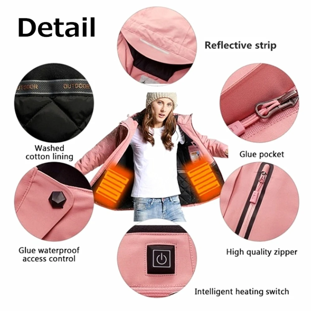 Зимняя парная теплая уличная спортивная верхняя одежда с капюшоном куртки с USB подогревом Походное кемпинговое снаряжение пальто унисекс оверсайз S- XXXL
