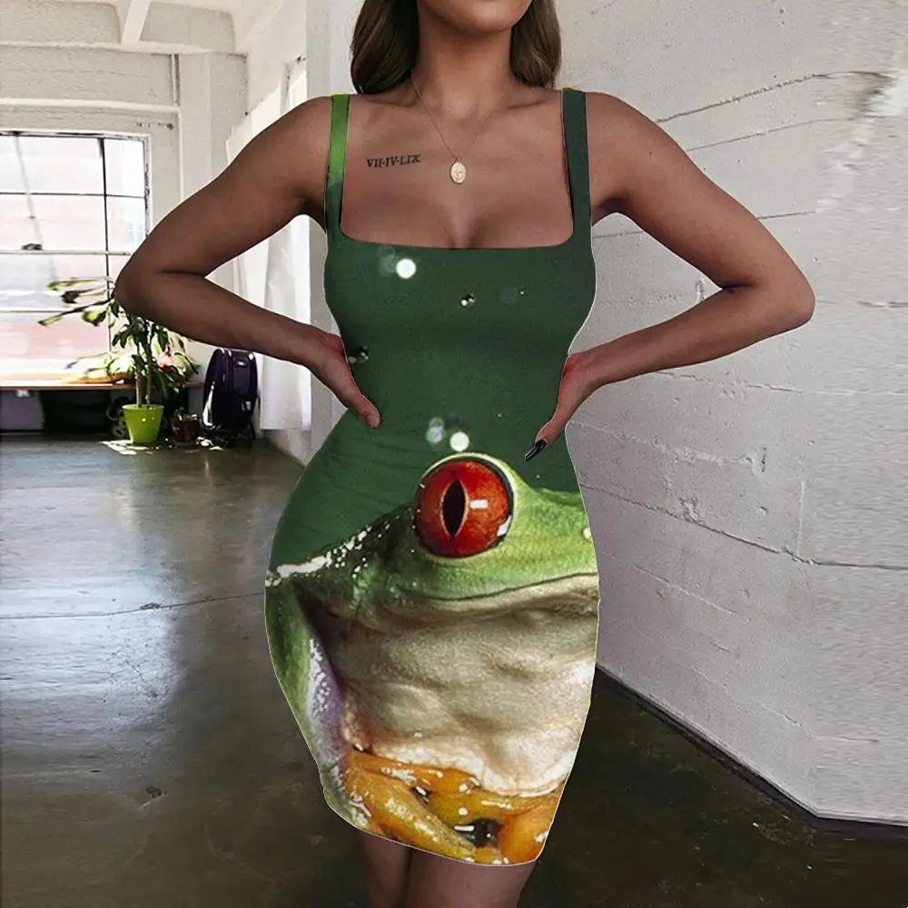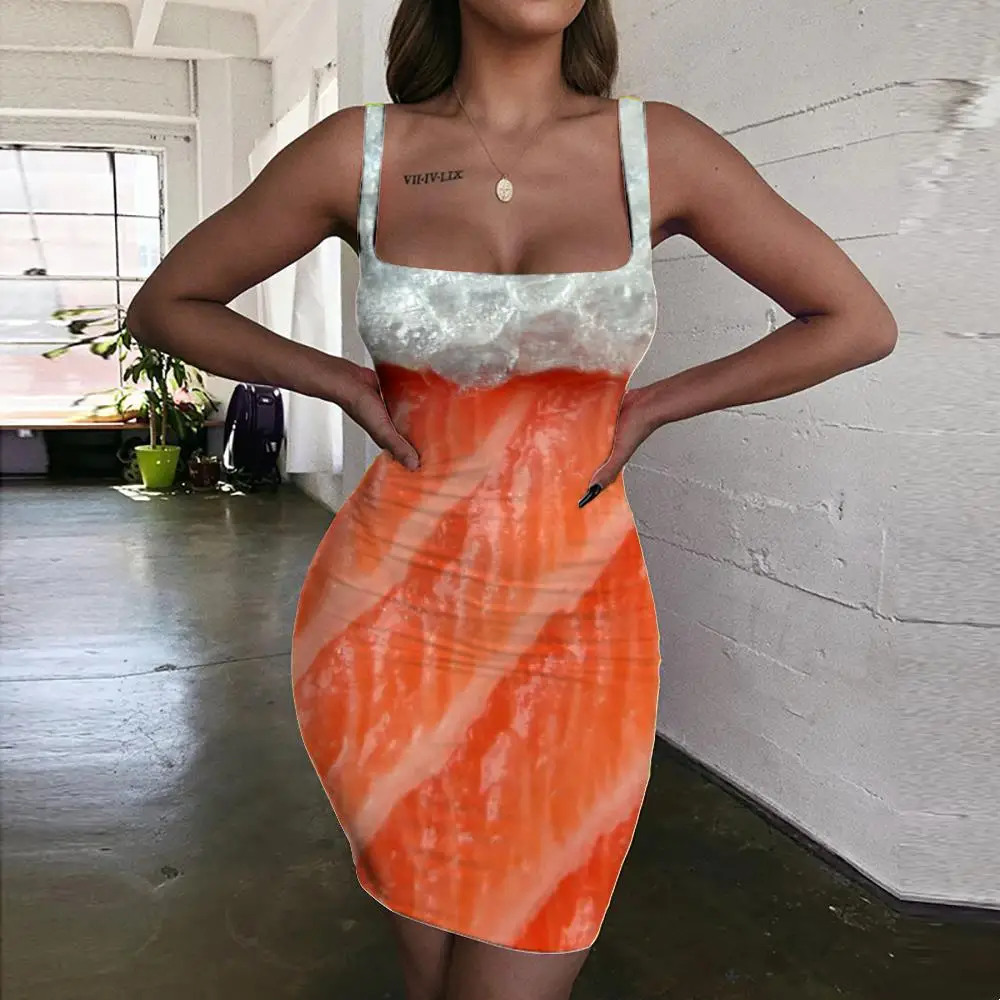 Женское короткое вечернее платье KYKU, облегающее платье без рукавов, с 3D-принтом в виде рыб, с лямкой через шею, лето