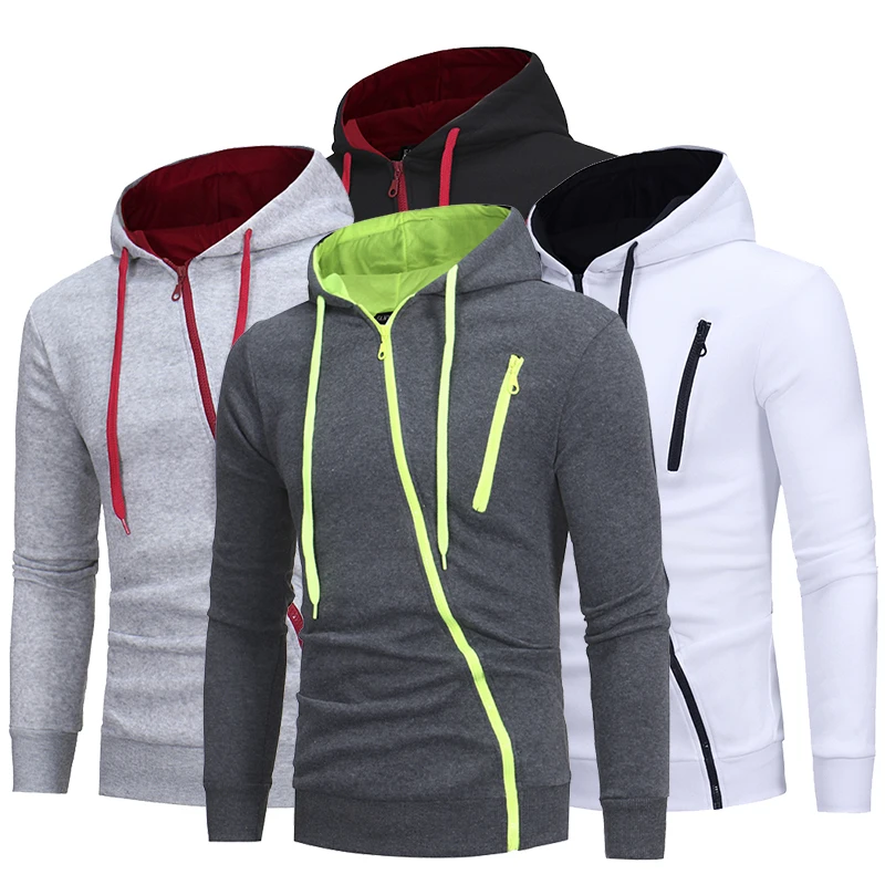 Мужская толстовка с капюшоном, с длинным рукавом, на молнии, осень ...
