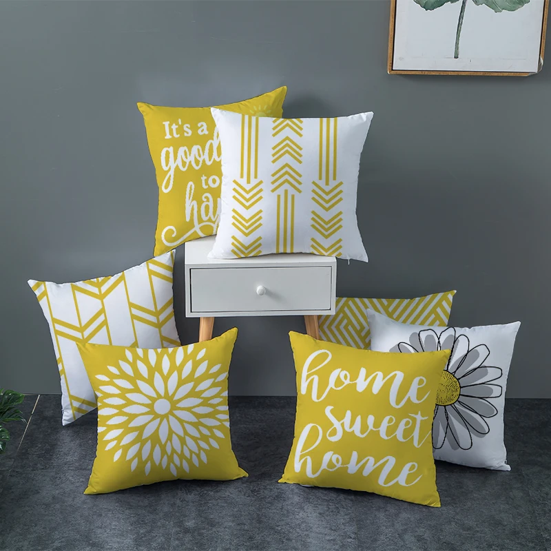Наволочка для подушки, 45x45, с геометрическим рисунком, желтого и серого цветов, декоративные подушки в скандинавском стиле, наволочка из полиэстера