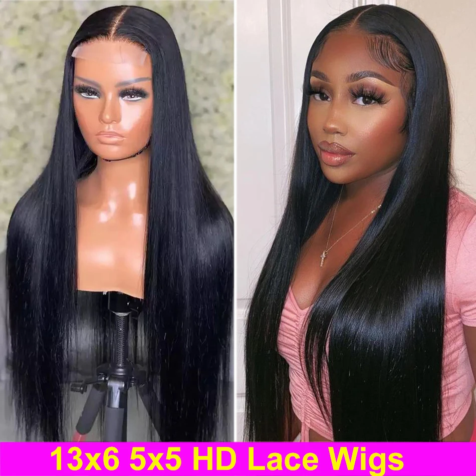 Необработанные индийские прямые волосы 13x 6, парики из человеческих волос на сетке спереди, парики HD на сетке спереди, предварительно выщипанные волосы 5x5, парик на сетке, натуральный черный