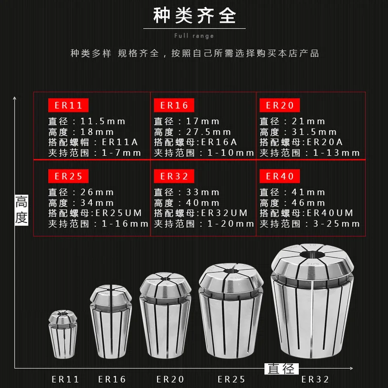 1 шт., ER11 1,5 2,5 3,5 ER16 1/4 6,35 1/8 3,175 1 2 3 4 5 6 7 8 9 10 мм пружинный цанговый набор для гравировального станка с ЧПУ, токарный станок, фрезерный инструмент