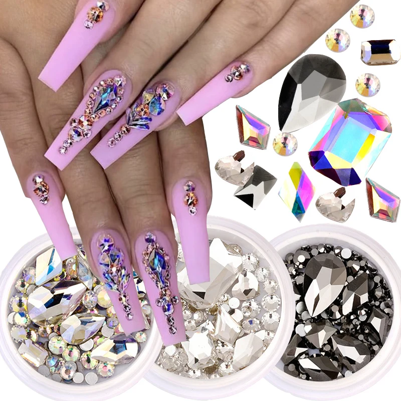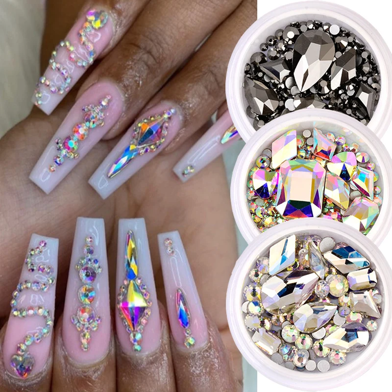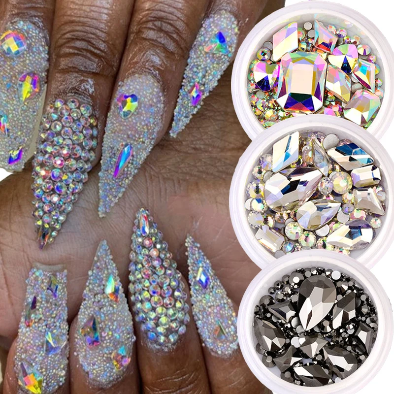 1 коробка Стразы для ногтей AB Цвет Алмазный кристалл смешанный раз...