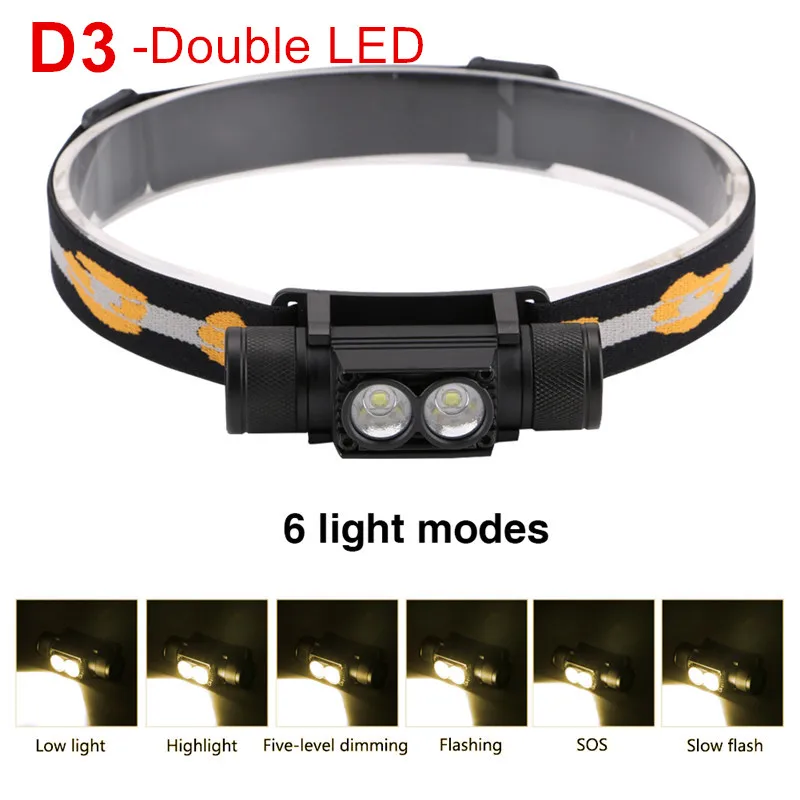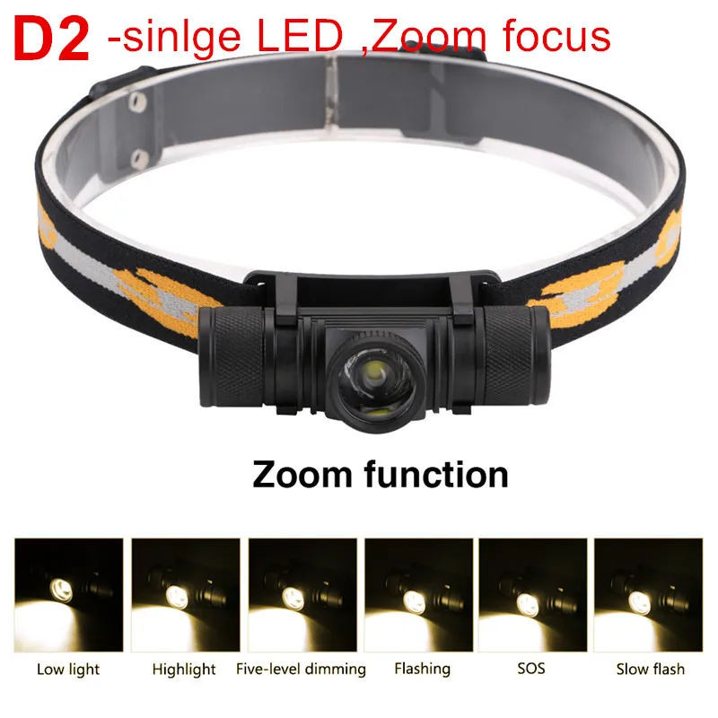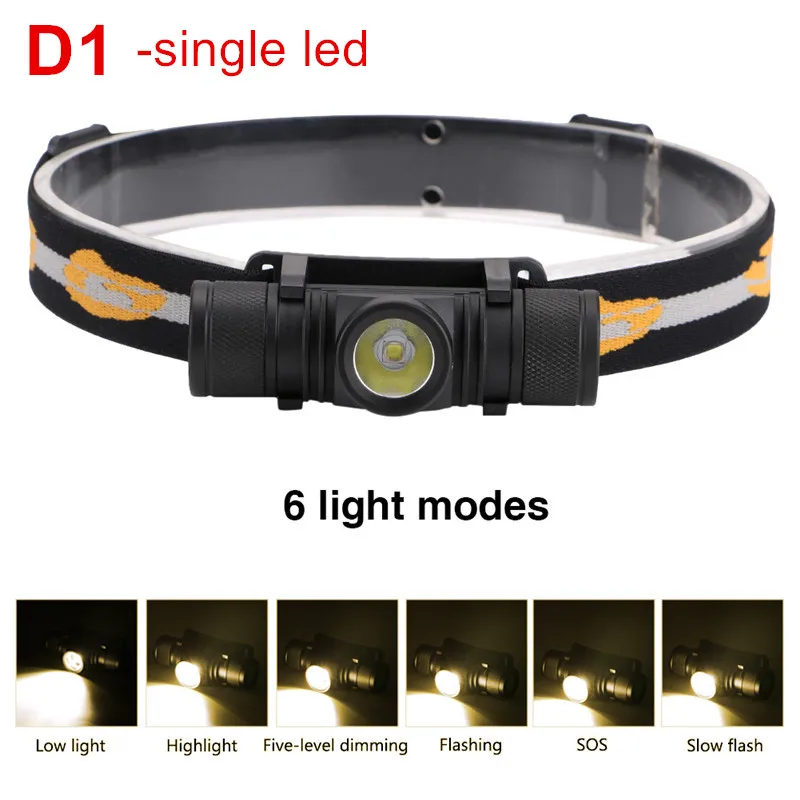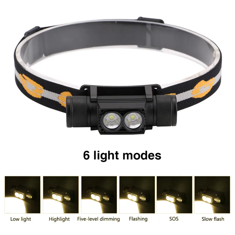 Налобный фонарь CREE XM L2, светодиодный, с зарядкой от USB