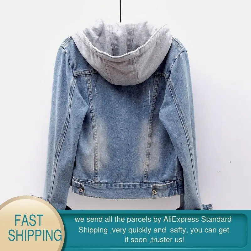 Винтажная джинсовая куртка, женское осеннее пальто, рваная верхняя одежда с капюшоном, ветровка, стандартная модель бойфренда