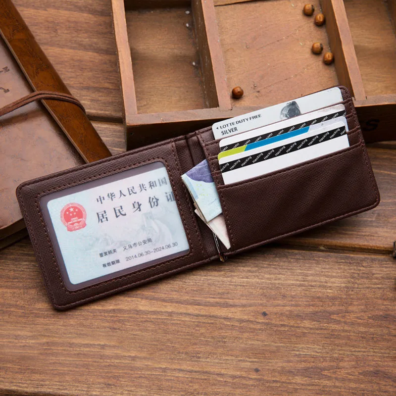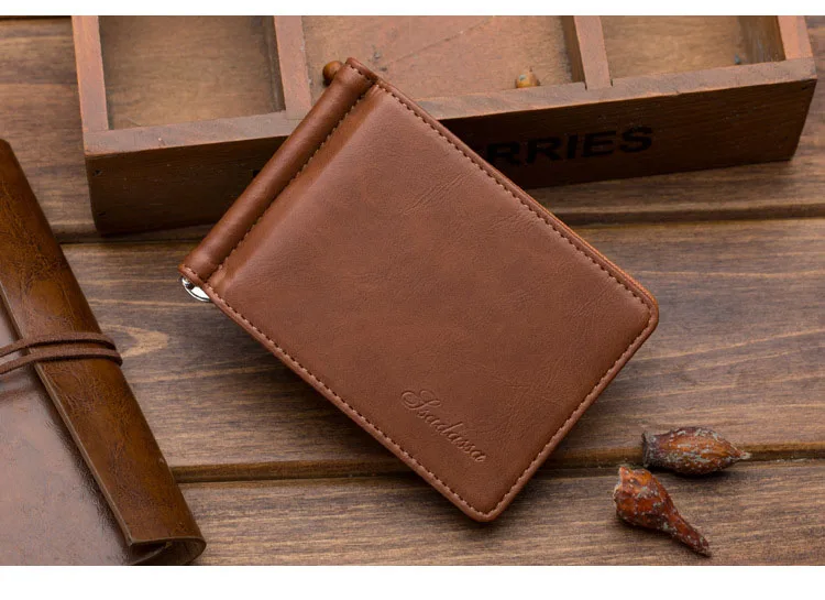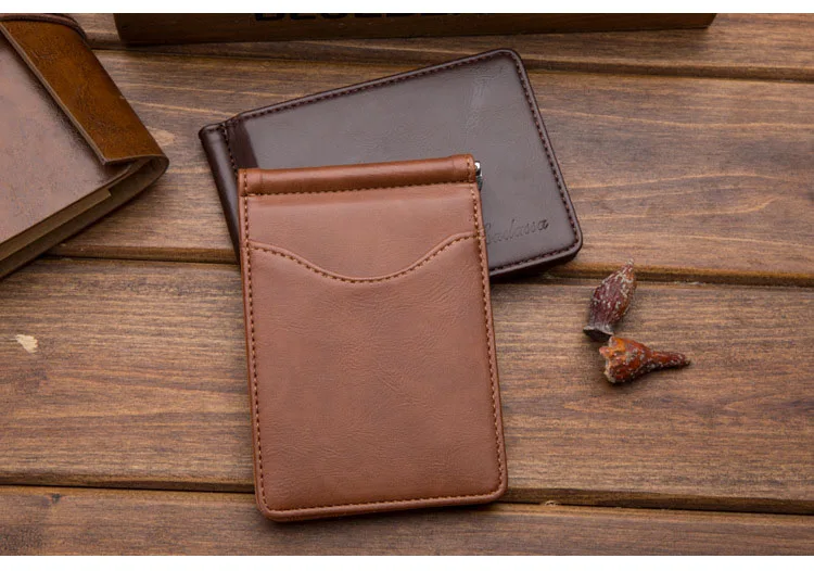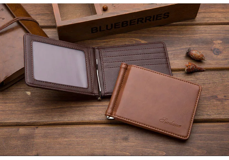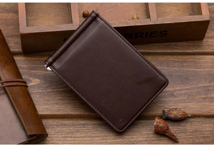 Новое поступление, тонкий мужской кожаный кошелек с зажимом для денег и отделениями для карт, металлический держатель для фото, маленький кошелек для мужчин