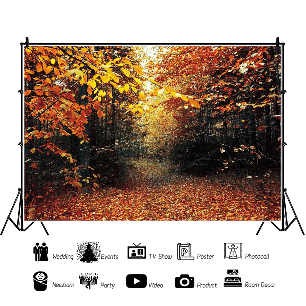 Осенний фон для студийной фотосъемки с изображением кленового леса