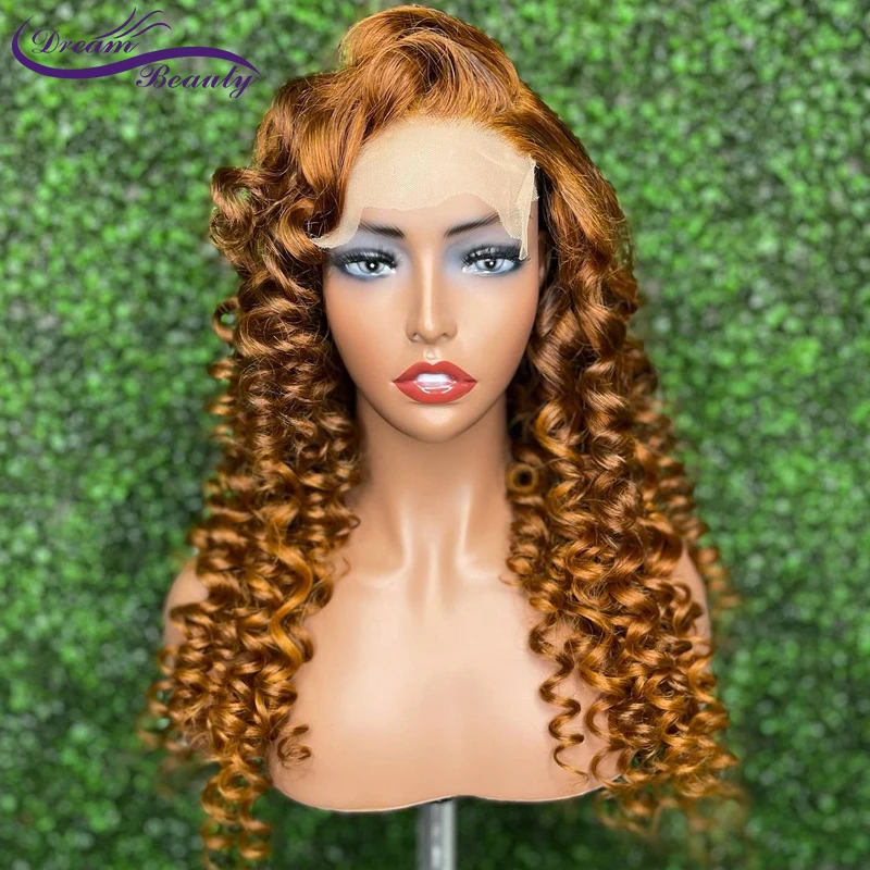 Парики из натуральных волос оранжевого имбиря, глубокая волна, 180%...