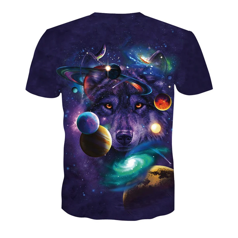 Модная дышащая трендовая футболка с животными для мужчин и женщин, блестящая футболка с изображением волка, синей Луны и короткими рукавами