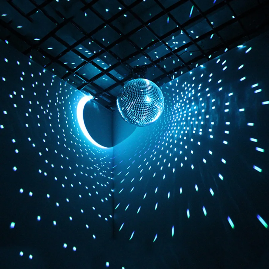 Вращающийся Зеркальный Шар отражает светильник на его поверхности. Таким образом будет создан великолепный светильник.