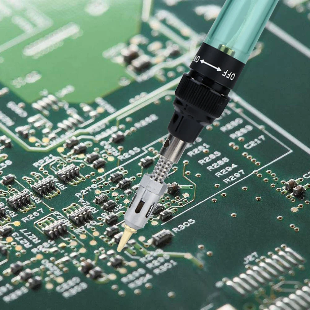 MT-100 14 в 1 беспроводной бутановый паяльник многоцелевой набор Регулируемое пламя для автомобильной электроники домашний DIY компьютерСпецификация:Материал: пластикТемпература: температура пламени 1300 ℃, температура паяльника 450 ℃Топливо: чистый Бутан (не входит в комплект)Время использования: 35-45 минутРазмер: 128*19*19 ммИнструкция:Заправка Газом1. Используйте высококачественный газ для заполнения и подтвердите, что переключатель находится в выключенном положении, а затем заполните2. Вставьте газовый бак в отверстие для воздуха и нажмите вниз, чтобы надуть.3. Около 10 секунд, газовое наполнение может быть завершено, подождите несколько минут, чтобы газ стабилизировался, а затем используйте его.4. Если после заливания газа в хвосте появляется шипящий звук, используйте наконечник ручки, чтобы слегка нажать на воздушный порт, чтобы устранить его.Зажигание1. Нажмите переключатель в положение ON и услышите «шипящий» звук.2. Нажмите на кольцо огнестойкости вперед.3. Используйте воспламенитель или зажигалку для воспламенения возле соединения.4. После освещения пожара, сгорите в течение 3 секунд, затем верните огнетушащее кольцо в исходное место. Когда огонь погаснет, наконечник паяльника будет продолжать нагреваться.5. Увеличение в направлении + и уменьшение в направлении-.6. Температура этого продукта составляет 1300 ℃ (температура паяльника составляет 450 ℃). Пожалуйста, обратите внимание на безопасность при использовании. Выключите выключатель после использования.7. При использовании газового паяльника, пожалуйста, обратите особое внимание на работу, пока пламя не будет полностью устранено, и предмет внутри паяльника станет красным.8. Длина пламени составляет около 1,2-1,5 см.Примечание:Возможны незначительные отклонения в размере из-за ручного измерения, различных методов измерения и инструментов.Изображение может не отражать фактический цвет изделия из-за различного фотографирования светильник, угол и дисплей монитора.