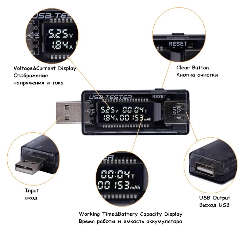 5. Емкость: 0-99999 мАч 6. Электрическая энергия: 0-999.999Wh
