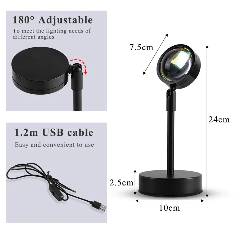 Лампа с радужным закатом, проектор, ночник, проекционный закат, све...
