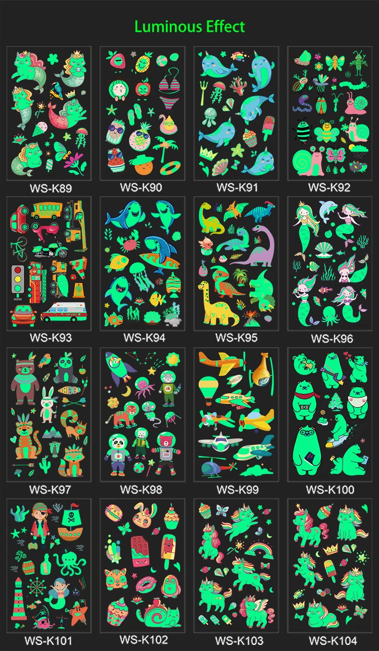 Светящиеся Детские Водонепроницаемые поддельные татуировки, наклейки, светящийся временный декор, боди-арт, рука, лицо, динозавр, единорог, Русалка, подарок для детей