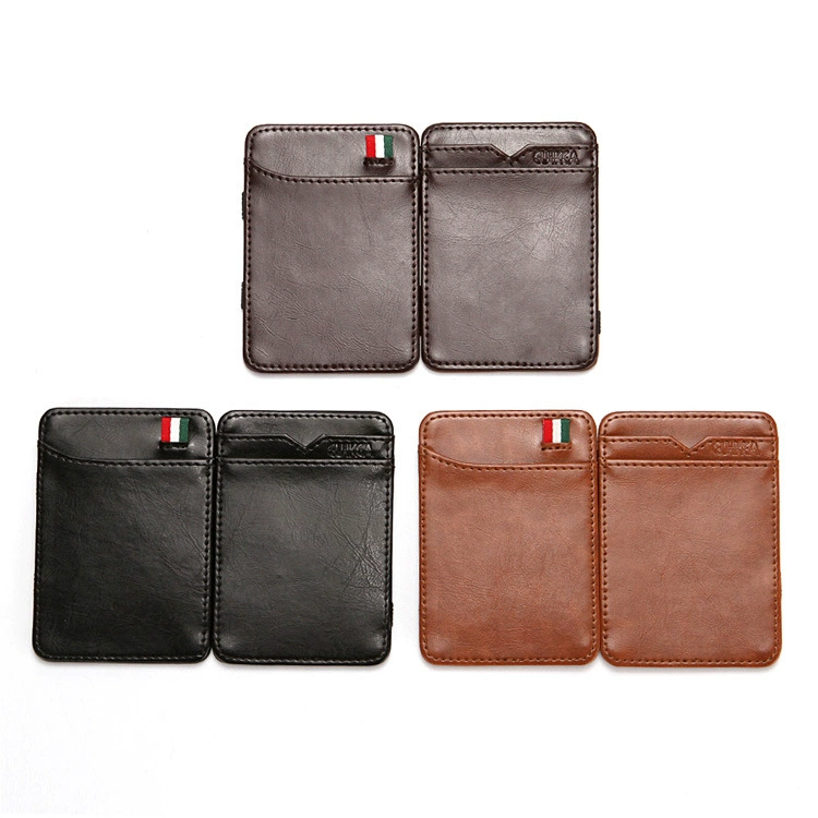 Новый модный тонкий мужской кожаный волшебный кошелек корейский дизайнерский держатель для кредитных карт женский маленький зажим для наличных двойной мужской зажим для денег