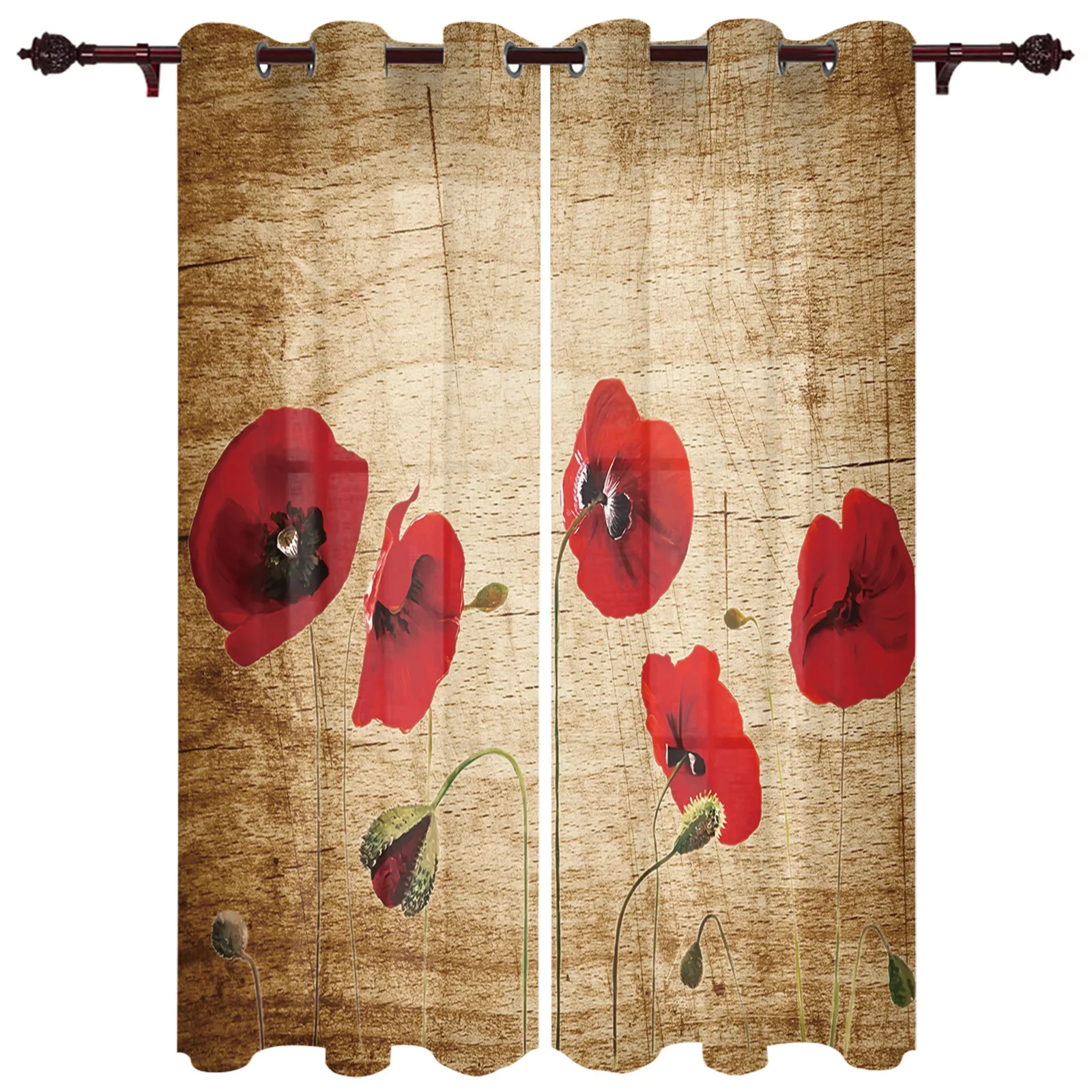 Шторы для гостиной, с изображением мака, деревянной текстуры
