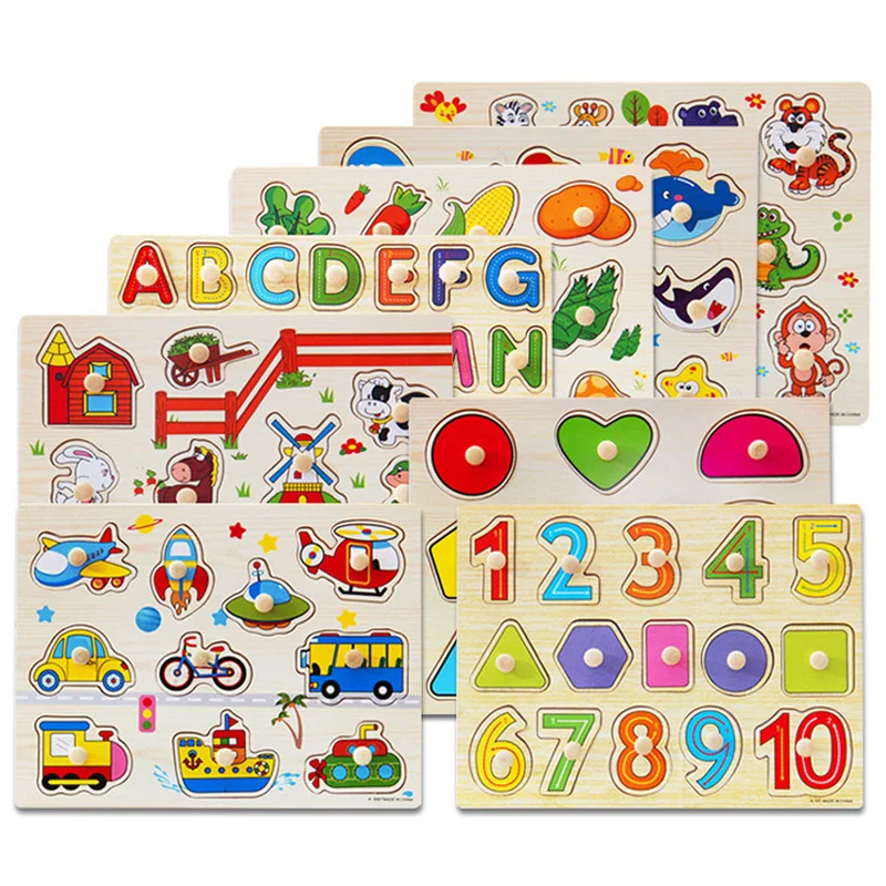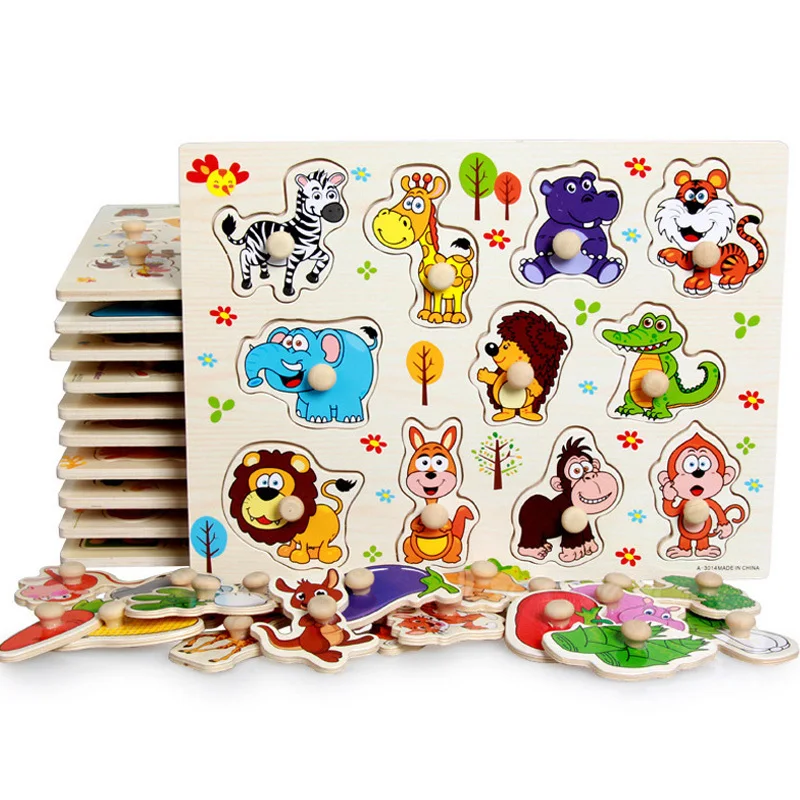 Деревянный пазл Монтессори для детей, 30 х22 см, Мультяшные животные, транспортные средства, 3D пазл, развивающие игрушки для детей