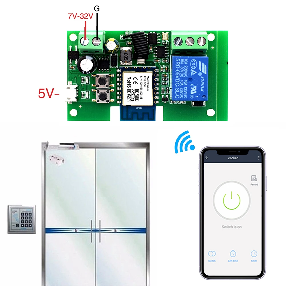 Переключатель Wi-Fi Tuya, постоянный ток 5 В, 12 В, 24 В, 32 В, 110 В, 220 В, встроенныйсамоблокирующийся беспроводной релейный модуль, автоматизация умного дома для доступа к дверям