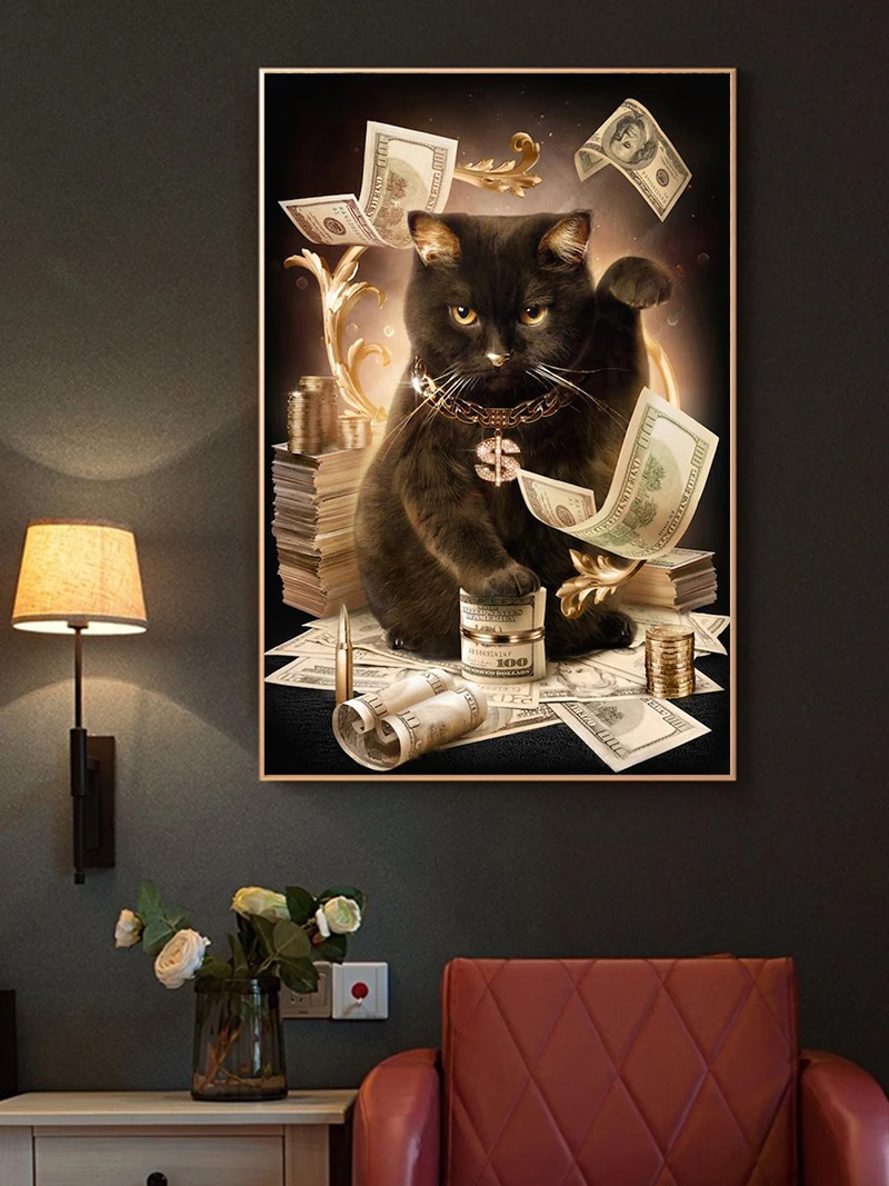 Распродажа, полноразмерная картина из квадратных страз 5D, вышивка крестиком кошка, деньги, мозаика стразы, картина, алмазная вышивка сделай сам, украшение для дома