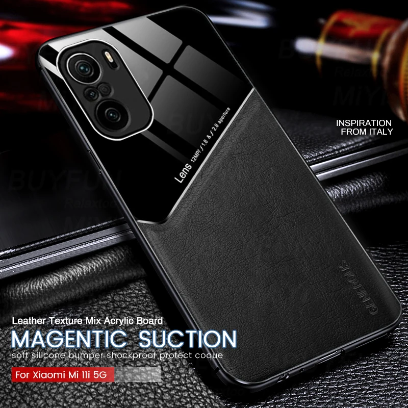 Жесткий ПК PU Кожаный Автомобильный магнитный держатель всасывающий чехол для Xiaomi Mi 11i 5G 6,67 ''ТПУ Мягкий Бампер анти-осенний защитный чехол на Mi11i