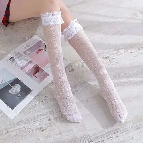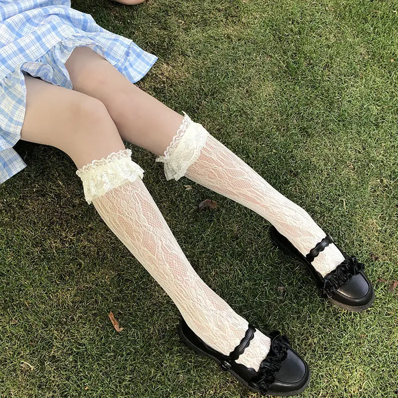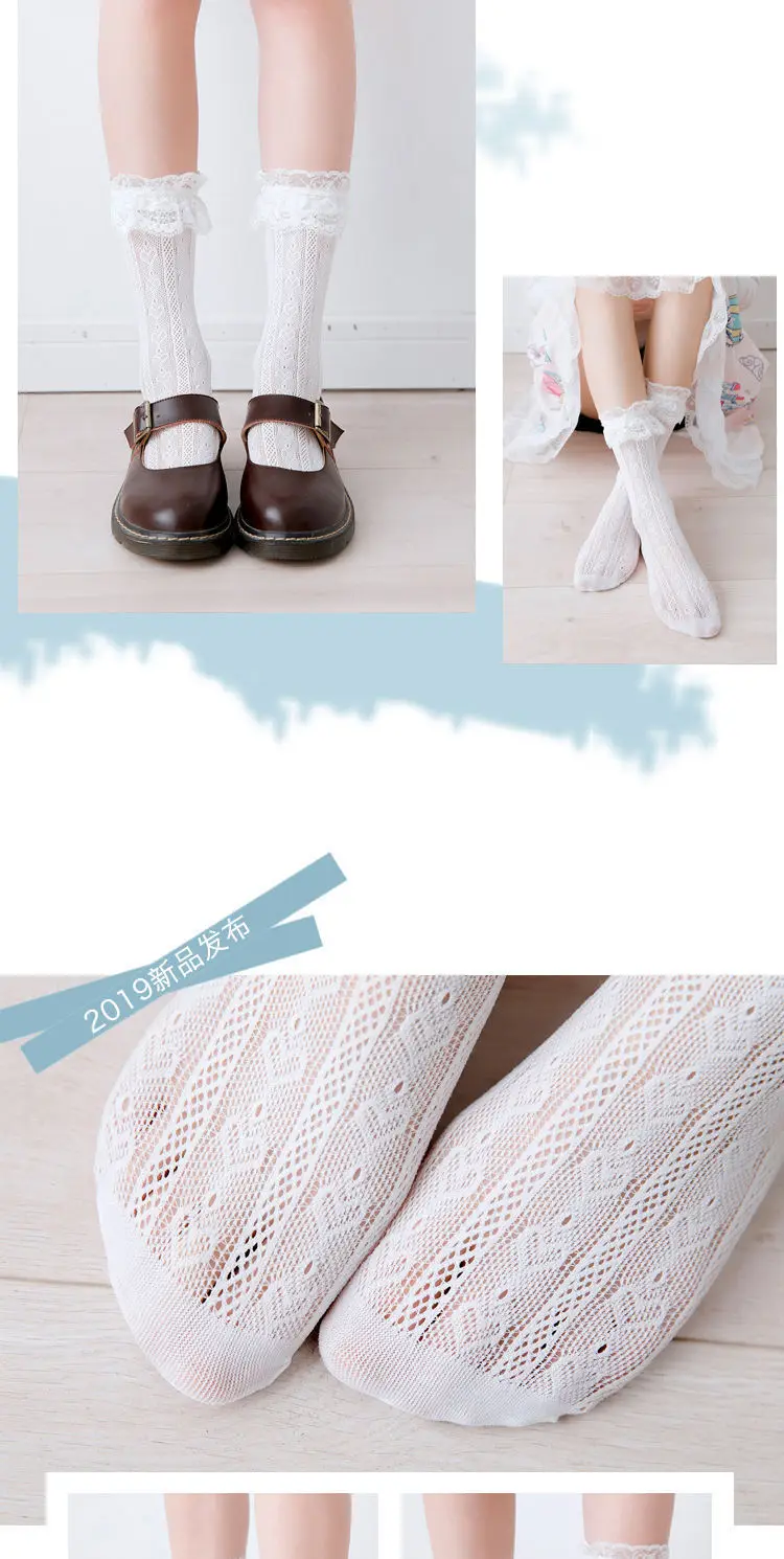 Японские длинные летние тонкие кружевные ботинки CHAOZHU в стиле Kawaii Lolita для девочек, аксессуары для аниме, белые, черные