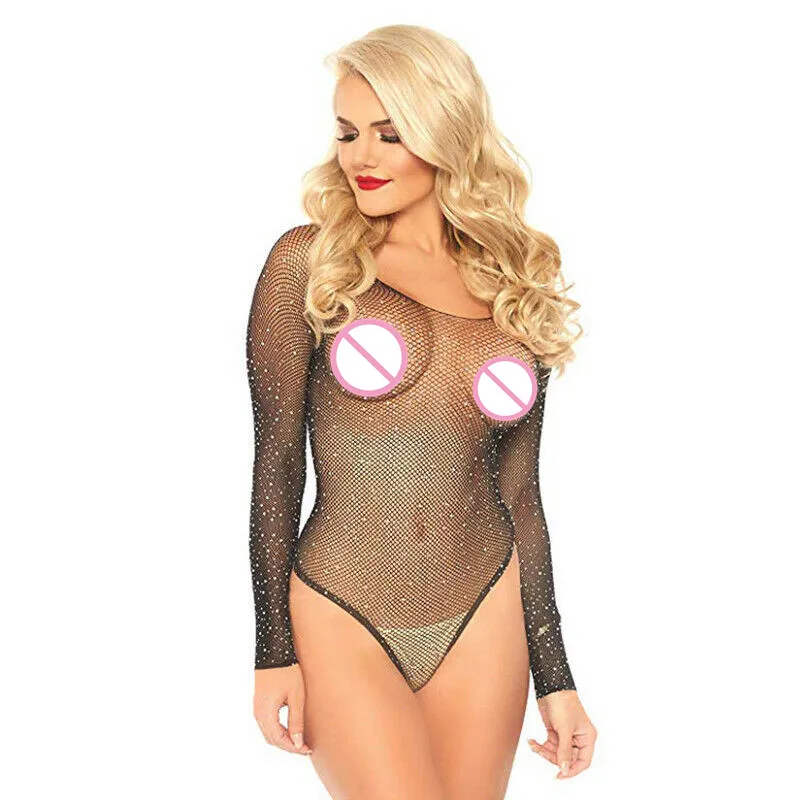 Сексуальное женское нижнее белье, боди в сеточку, облегающее трико с длинным рукавом, топ с вырезами, прозрачный топ с открытыми плечами
