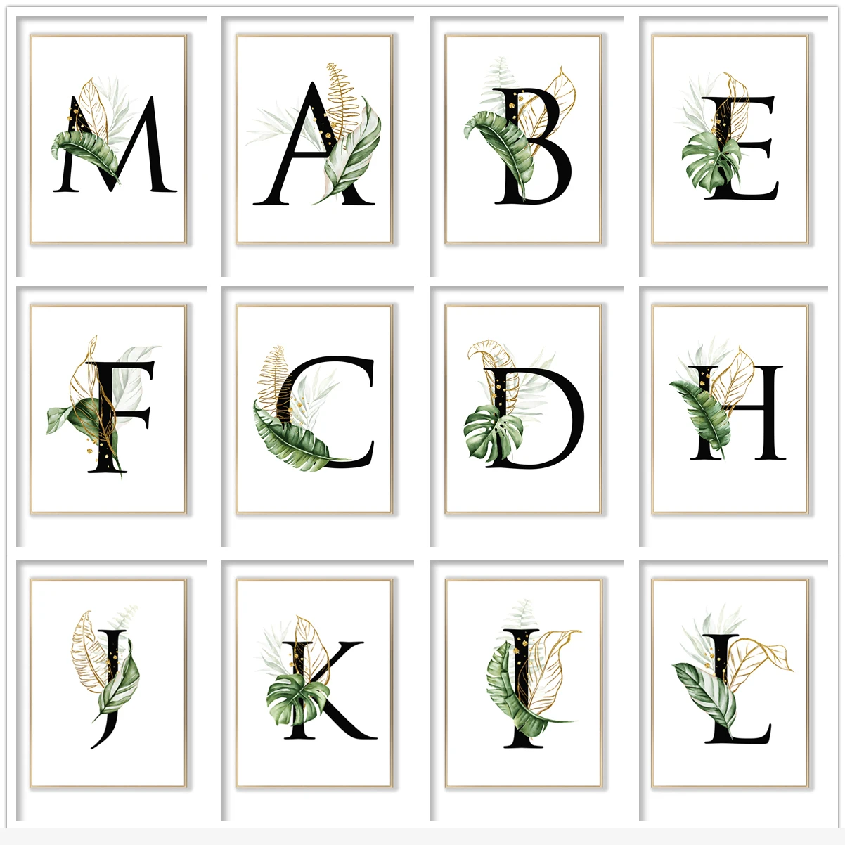 Алмазная 5d картина сделай сам с буквами и именем на заказ, скандинавский плакат, алфавит с зелеными растениями, Алмазная мозаика, вышивка крестиком, домашний декор, подарок