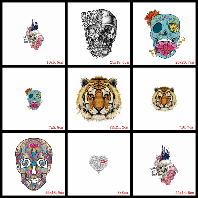 Красочные Панк Череп термо наклейки нашивка со слоном аппликация теплопередачи патчи для одежды Железный на перенос для одежды Минимальный заказ: 1 шт. Размер: как показано на картинке