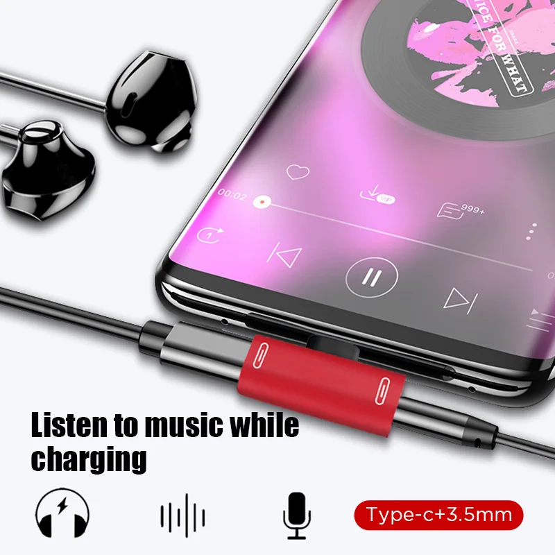 Двойной адаптер для зарядки наушников разветвитель для Xiaomi Huawei T-образный тип C для разъема 3,5 мм к разъему для наушников Кабельный разъем