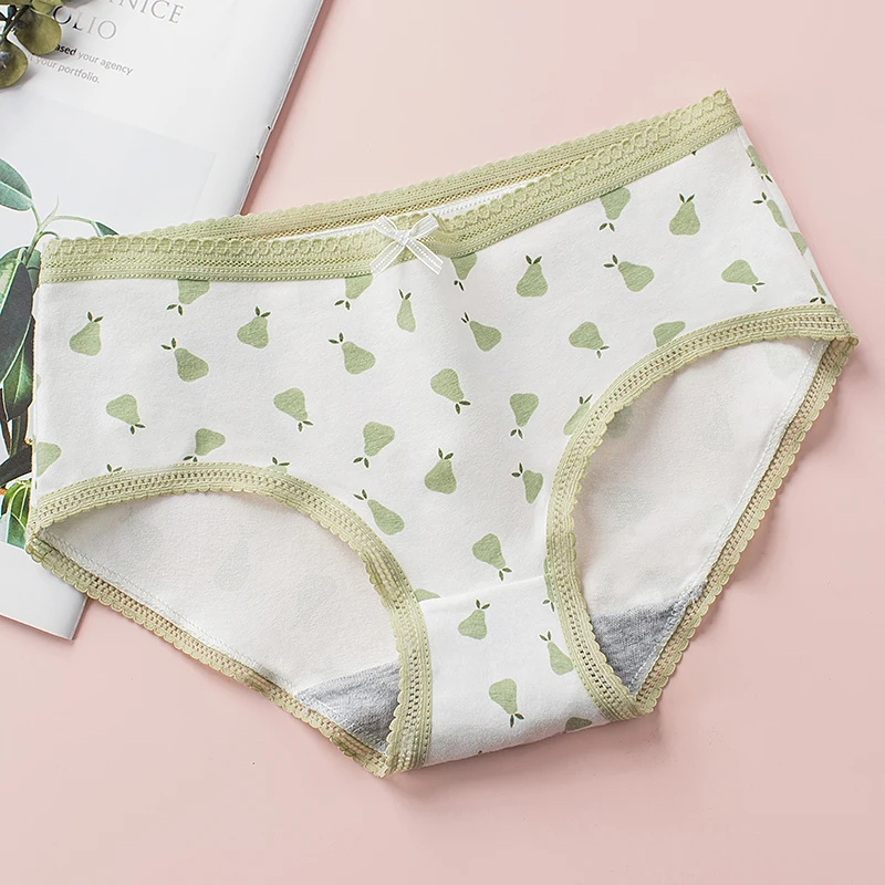 Трусы женские кружевные светло-зеленые, милое дышащее хлопковое ниж...