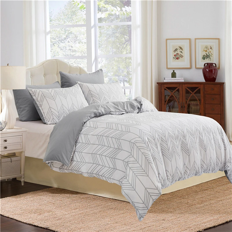 Комплект постельного белья для дома, Простые, с геометрическим рисунком, белые пододеяльники, Королевский размер