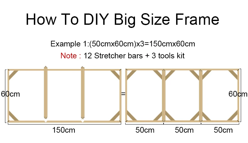 (Пожалуйста, убедитесь, что ваш картина имеет дополнительный вес 2,5 см, то есть размер брезентового должно быть не менее больше, чем размер 5 см деревянный каркас)