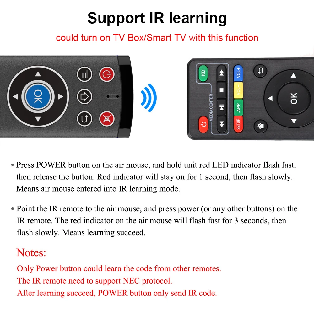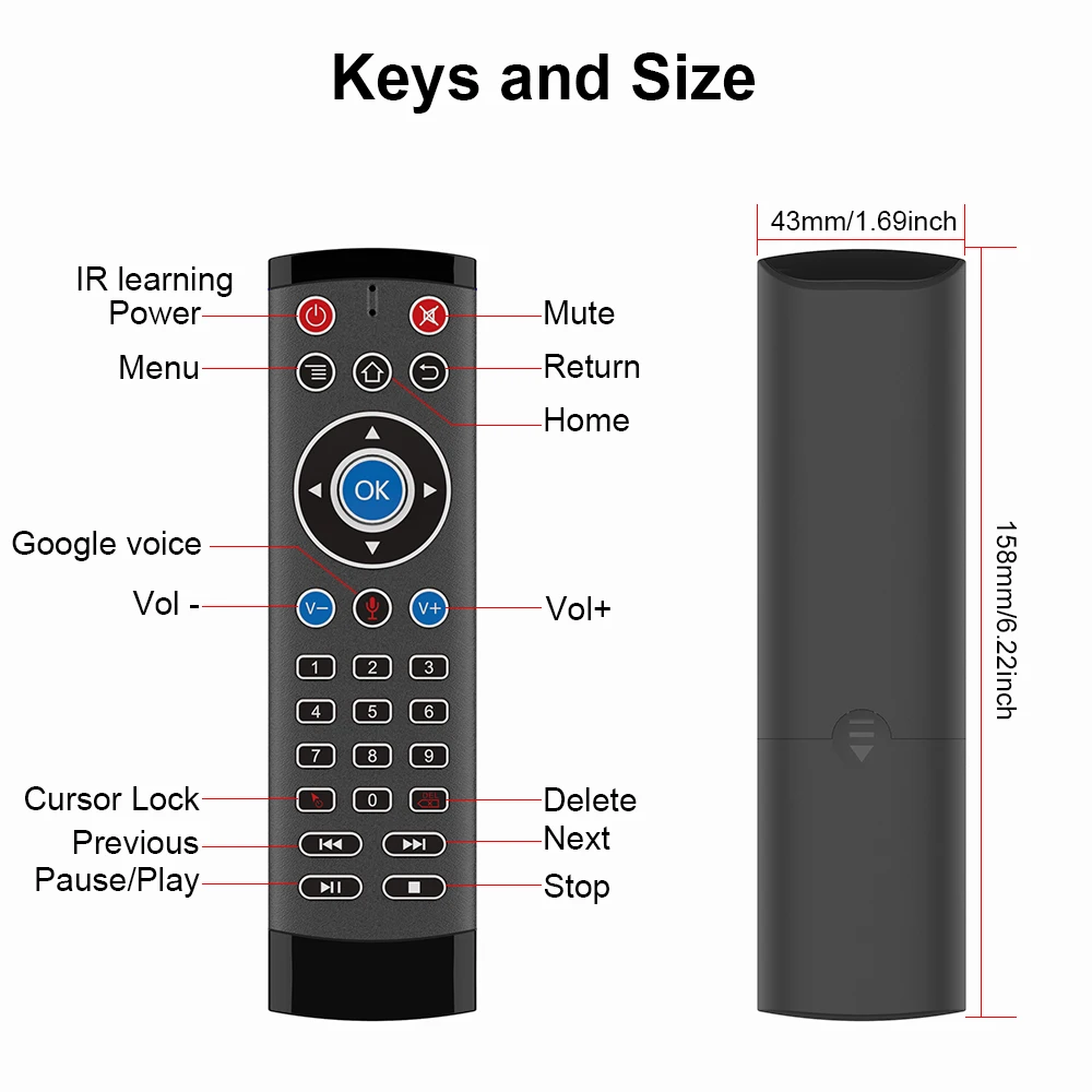 Особенности: микрофон + гироскоп + клавиши с цифрами + 1 Клавиша ИК-обученияПодключите Тип: 2,4 ГГц БеспроводнойРабочее расстояние: приблизительно равное 10 мКнопки: 29 клавишТип батареи: 2 батарейки ААА (не входит в комплект)Применение: для ПК, планшетных ПК, HTPC, IPTV, веб-ТВ, Smart TV, Google TV, Android TV Box/Stick, бытовой техники, мультимедийных устройств и т. Д.Операционная система: Поддерживаемые ОС: Android Windows, Mac OS, LinuxЦвет: черныйМатериал: силикон + пластикРазмер: 157x42x16 ммПосылка:1 * Воздушная мышь1 * Руководство пользователя1*2,4 ГГц беспроводной приемникТолько вышеуказанная посылка, другие товары не включены.Примечание: светильник и различные дисплеи могут привести к тому, что цвет товара на картинке немного отличается от реального. Допускается погрешность в измерениях +/- 1-3 см.