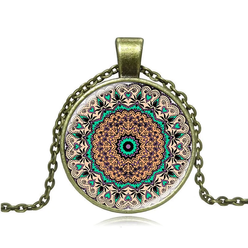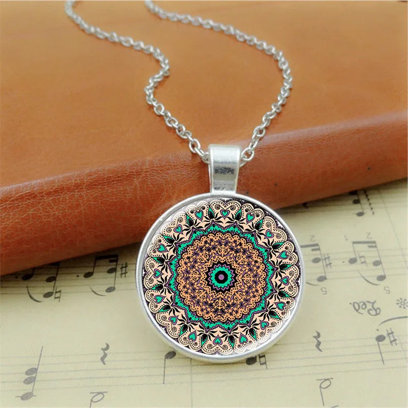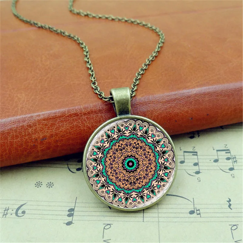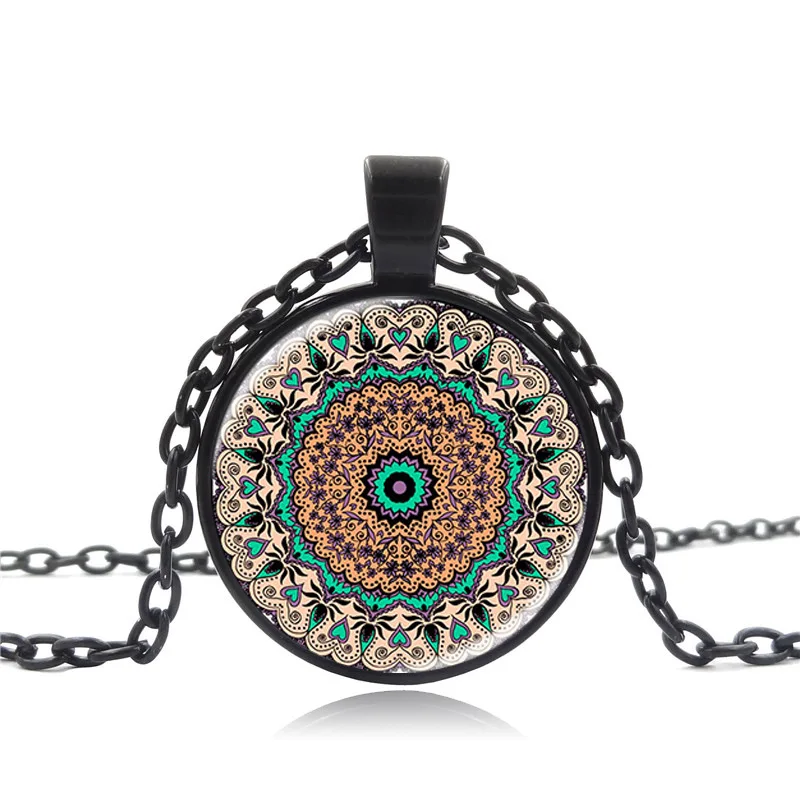 Буддистское ожерелье со стеклянным куполом, подвеска с кабошоном, Индийская Йога ожерелье с мандалой, креативный подарок унисекс, ювелирные изделия дружбы