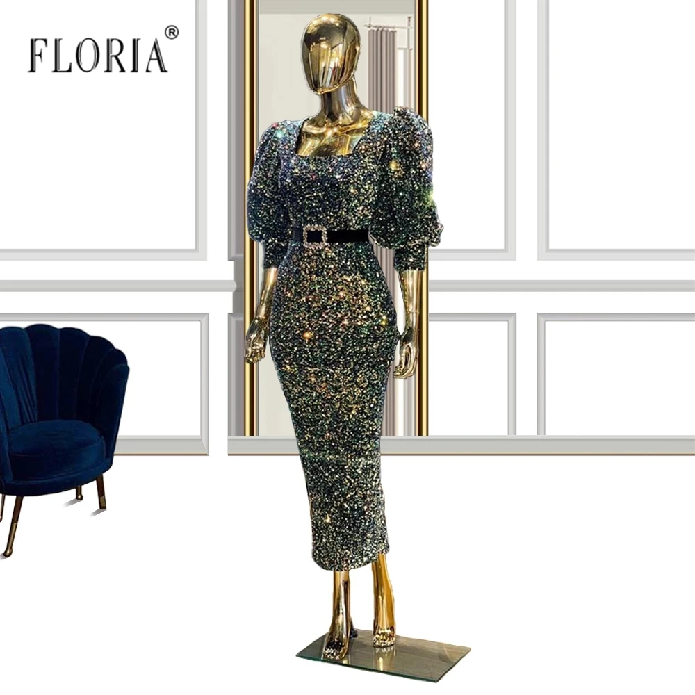 Женское вечернее платье с разноцветными блестками, длинное платье д...