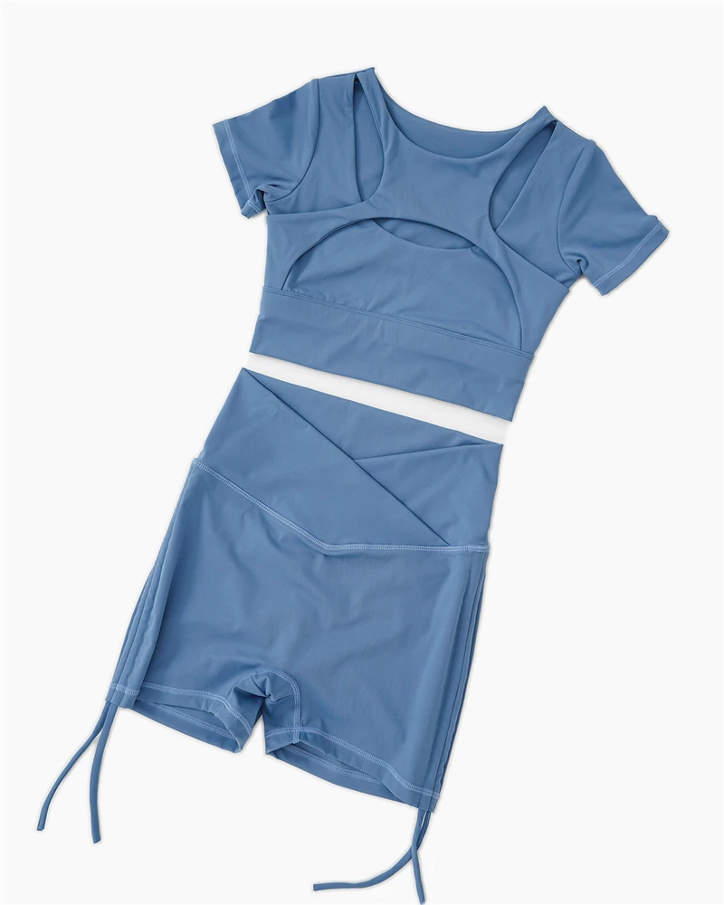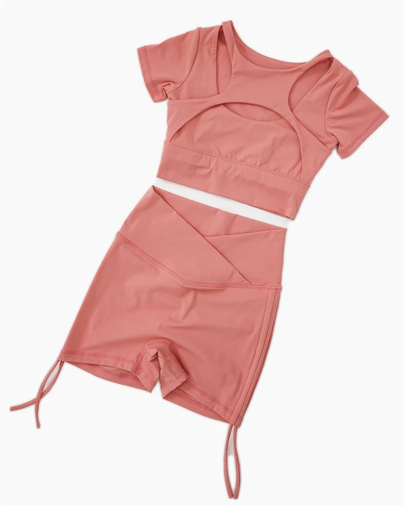 Сексуальный костюм для йоги с коротким рукавом, топ для бега, футболка для йоги, шорты, одежда для тренажерного зала, фитнеса, спортивная одежда, 2 шт.