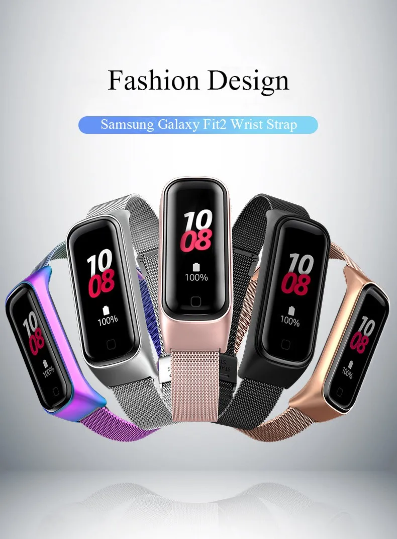 Ремешок для Samsung Galaxy Fit2, магнитный браслет для часов, ремешок на запястье, сменный металлический ремешок из нержавеющей стали для фотографий