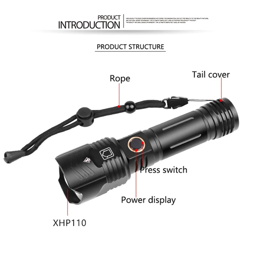 Мощные 16-ядерсветодиодный фонарики XHP160, 10000 мАч, XHP110, USB перезаряжаемые тактические фонарики, фонарик с зумом, с батареей 2665018650