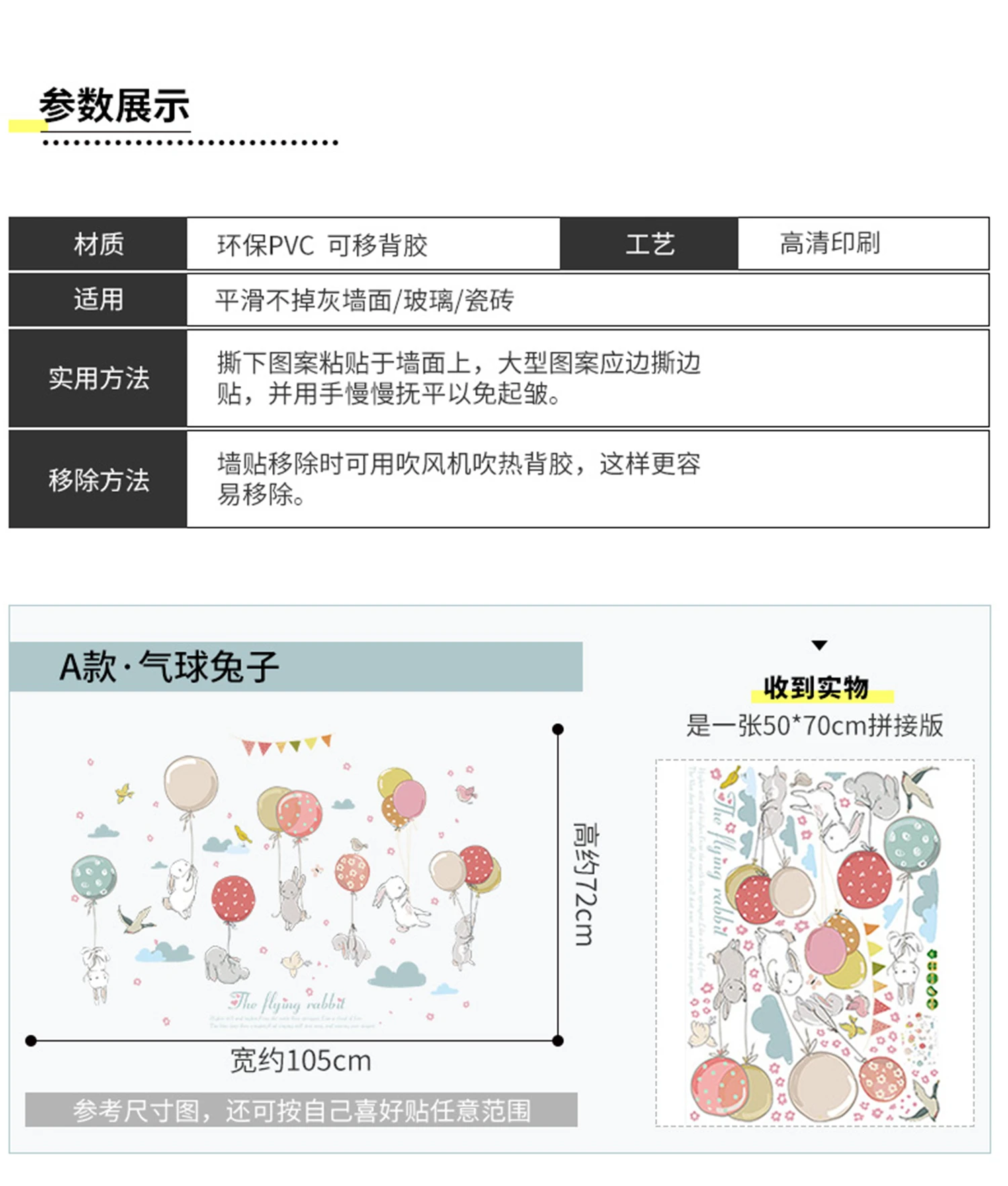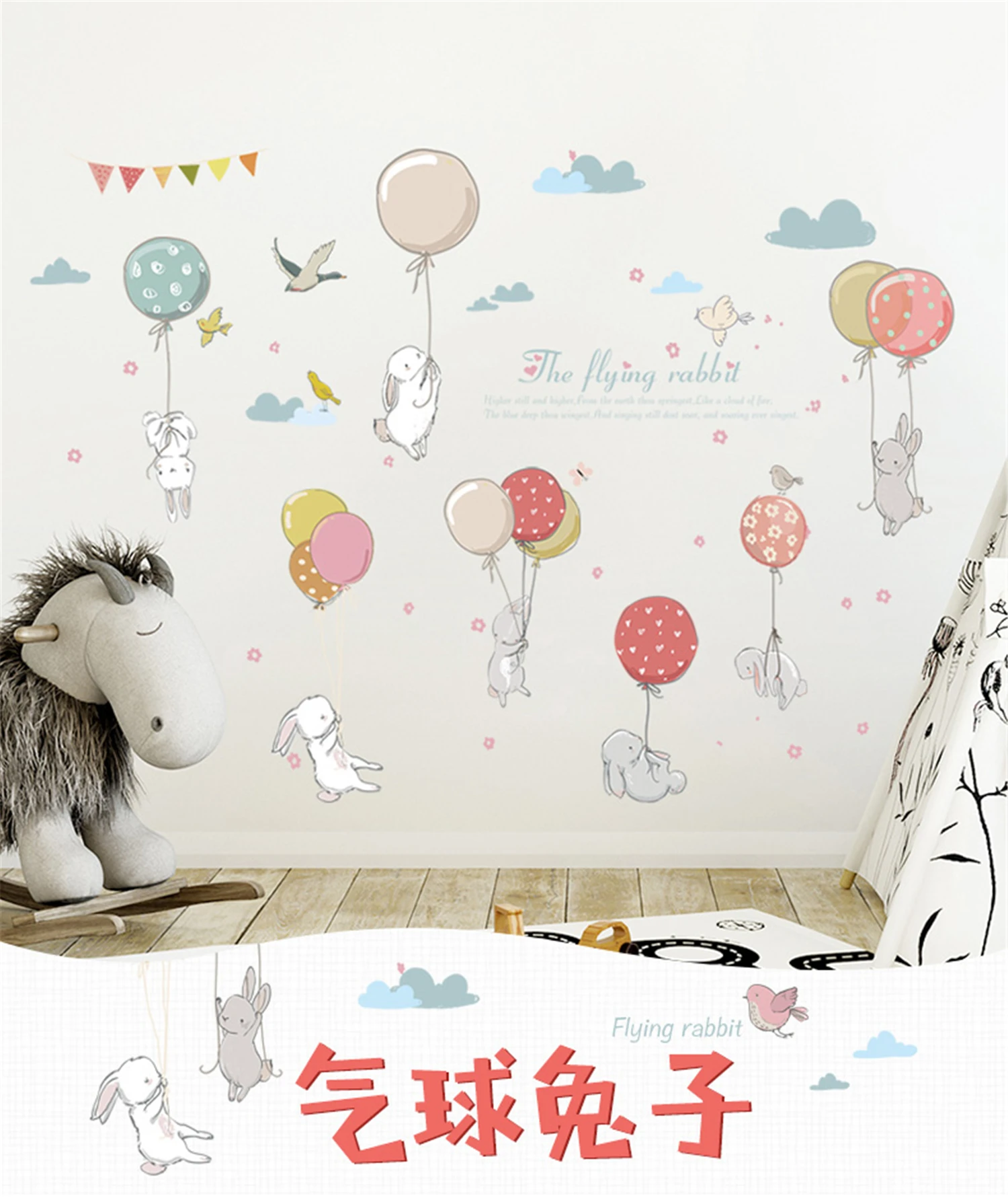 Наклейка на стену с кроликом, мебель, воздушный шар, Детские Виниловые наклейки на стену, животные