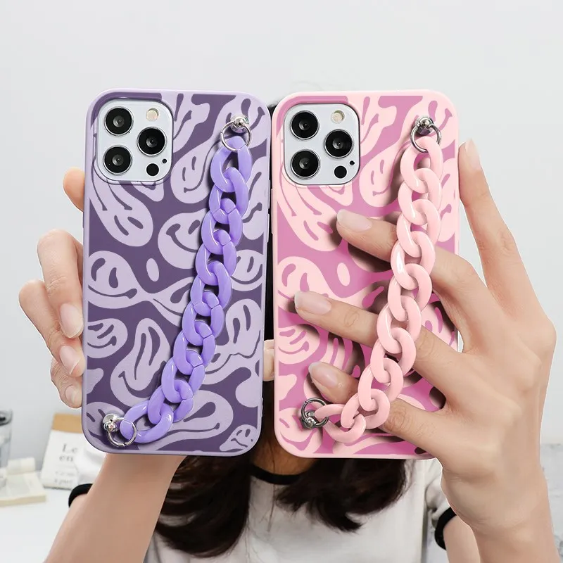 Браслет с мультяшной улыбкой и цепочкой на запястье, мягкий чехол д...