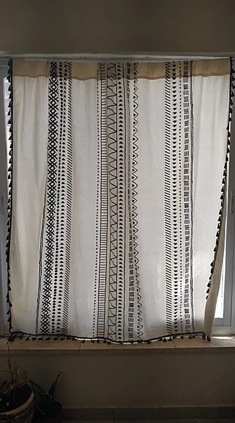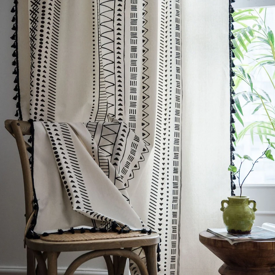 Занавеска в стиле бохо, полосатая занавеска с геометрическим рисунком, с кисточками, для спальни, гостиной